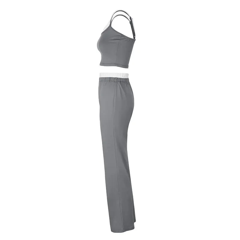 Meet the Chill Babe Lounge Set — your new go-to for effortless summer days and cozy nights in. This two-piece features a cropped spaghetti strap cami and relaxed, high-waisted trousers for maximum laid-back cool.